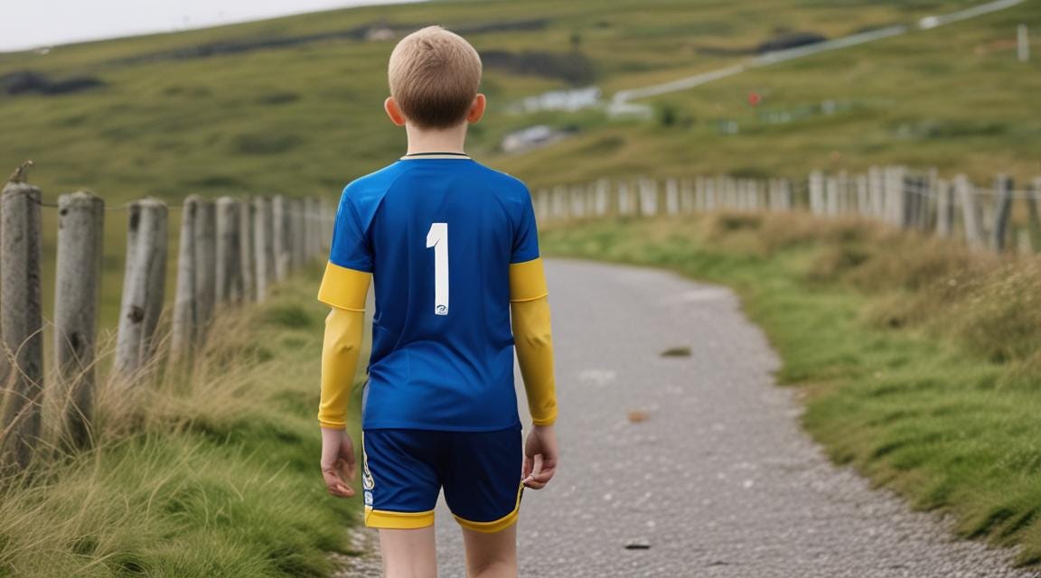 Thus, I digress. And I do so without shame, as the Colors of Donegal came to me again. Colors of Donegal is a poem I had written about a football jersey a boy was wearing on one those narrow Irish roads. I was surprised to see them.